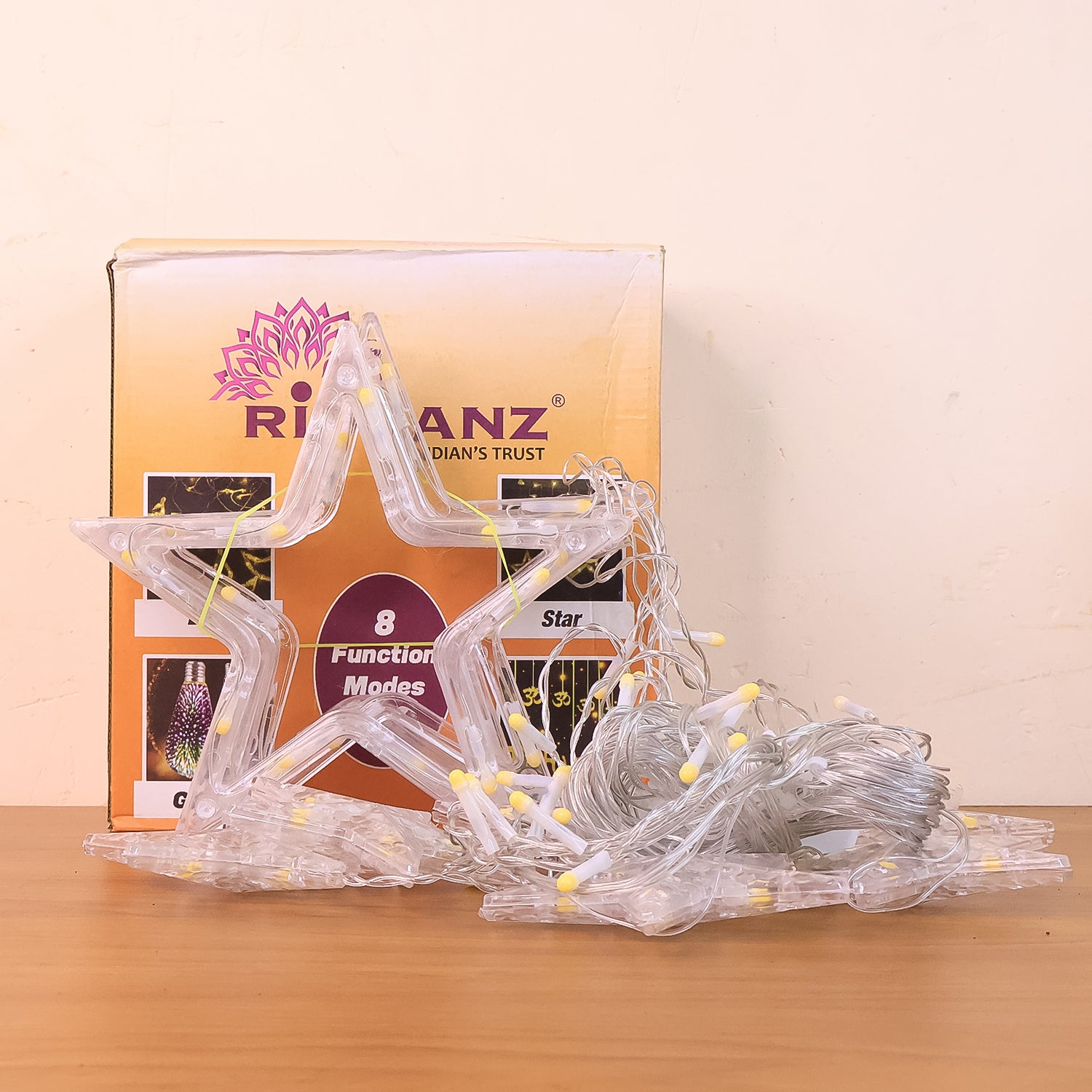 12 Stars LED Curtain String Lights with 8 Flashing Modes for Home Decoration, Diwali & Wedding LED Christmas Light Indoor and Outdoor Light ,Festival Decoration (Warm White / With Box)