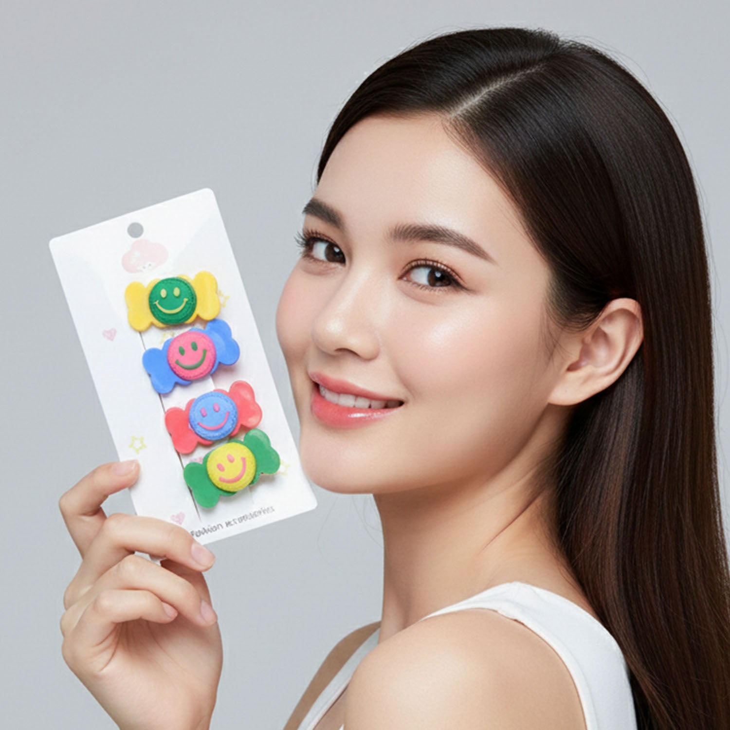 Colorful Smiley Candy Design Decorative Hair Clip Set (4 Pc)