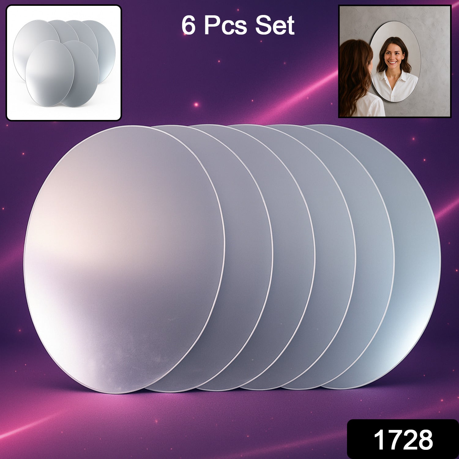 Elegant Oval Frameless Wall Mirror for Home & Office Decor (6 Pc)