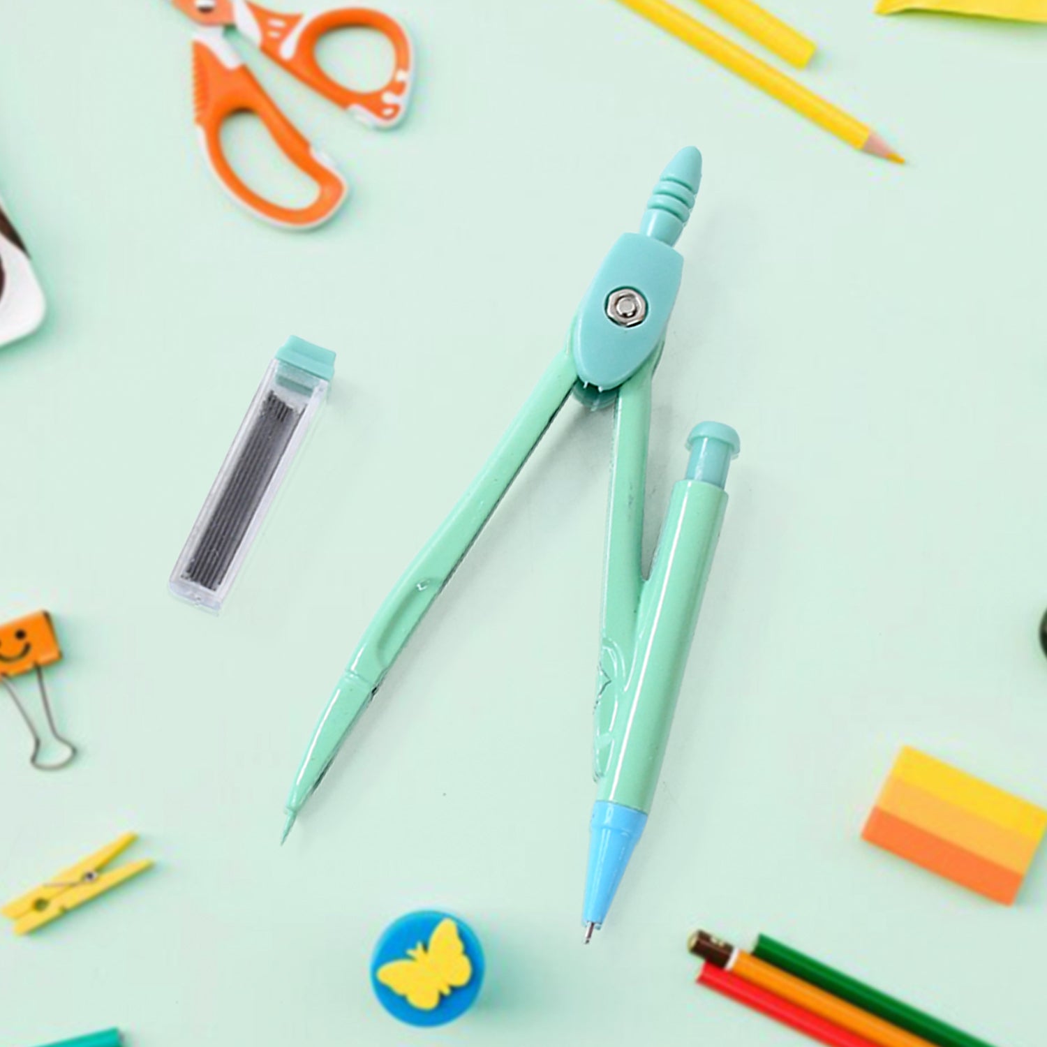 The set comprises a durable metal compass, a mechanical pencil, a tube of lead refills, and a cute case that keeps everything organized and easy to carry. With its colorful and kid-friendly design, this is a perfect gift for school-going children and a must-have addition to any student’s stationery collection.