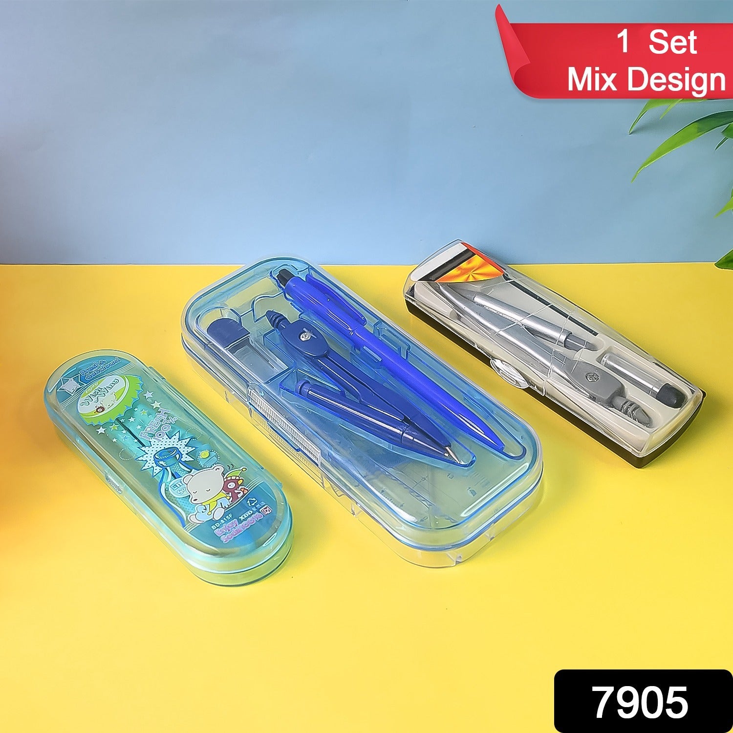This 1 Pc Mix Design Geometry Compass Set offers a variety of stylish and functional compass kits perfect for school-going children and students. Each set includes essential mathematical instruments such as a compass, pencil, divider, and ruler, all housed in a compact and durable plastic box.