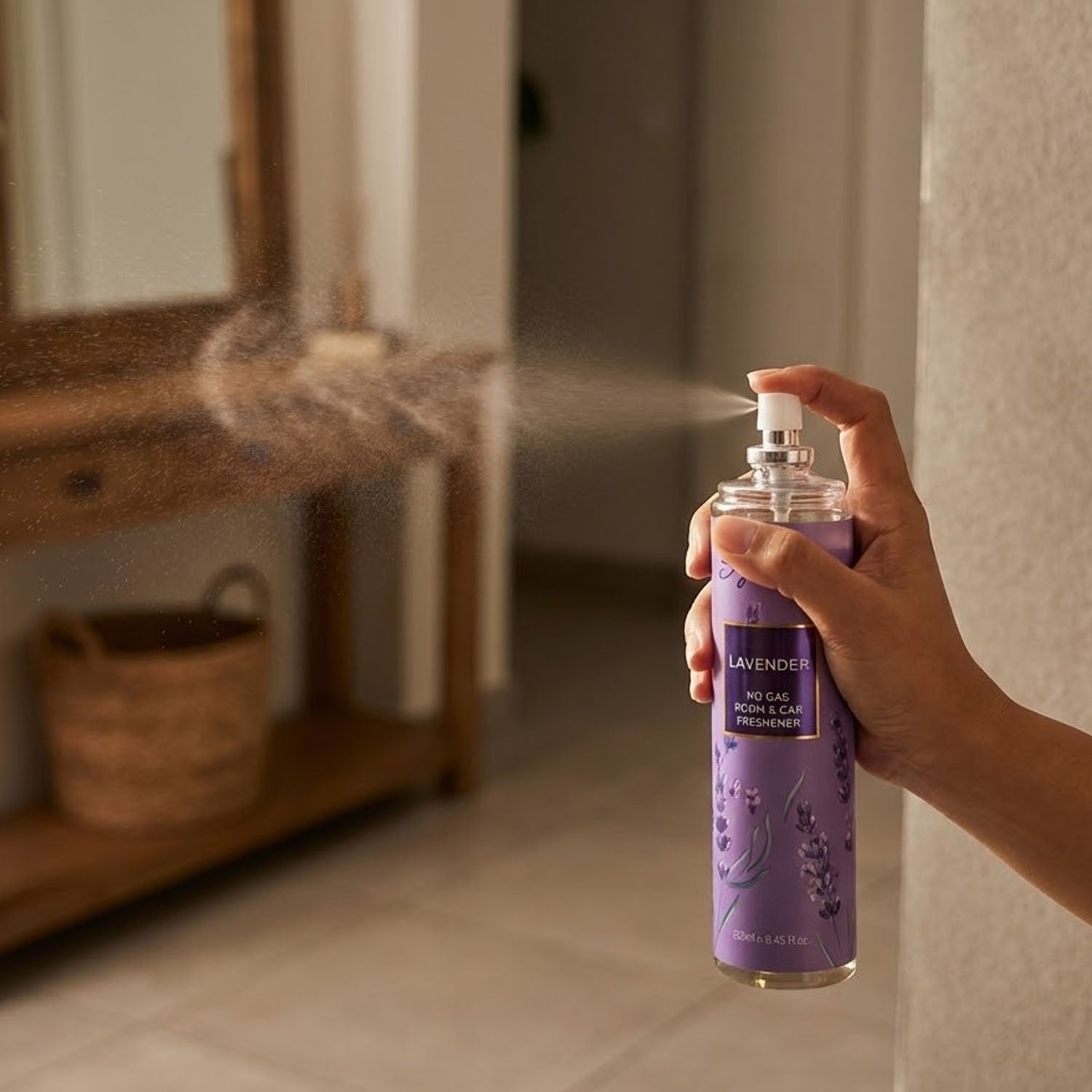 lavender room freshener, car air freshener, no gas air freshener, long lasting fragrance spray, home freshener spray, office air freshener, bathroom freshener spray, vehicle air freshener, multipurpose air freshener, lavender fragrance spray, non-aerosol room spray, natural air freshener, indoor air freshener
