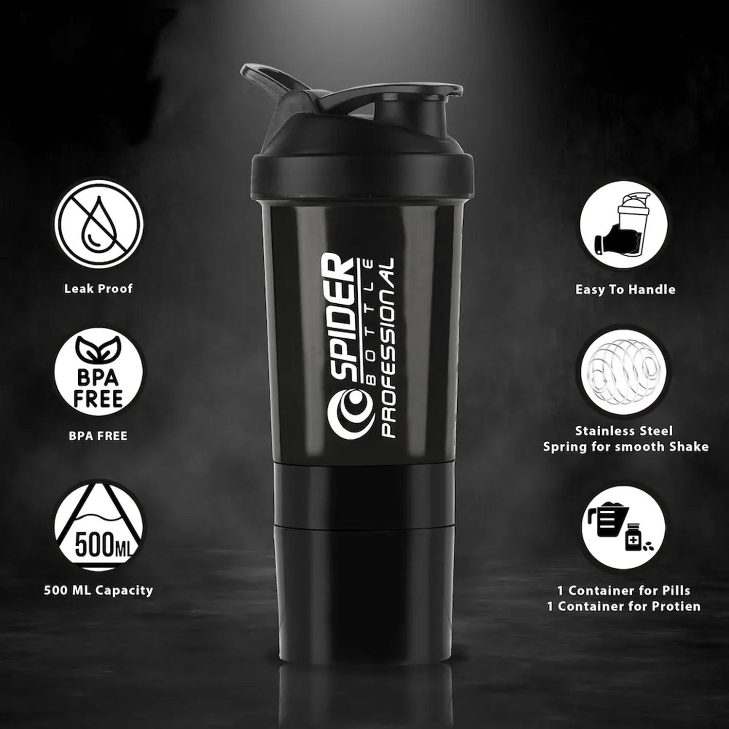 this protein shaker bottle is designed for convenient and mess-free mixing of protein shakes, supplements, and beverages. the smart multi-compartment structure allows easy blending and storage of powdered mixes, making it perfect for fitness routines and active lifestyles. the secure flip-top lid ensures spill-free usage, while the compact cylindrical design fits comfortably in gym bags, backpacks, and car holders. suitable for daily hydration, post-workout nutrition, and on-the-go use, this shaker bottle combines functionality with a practical, modern look.