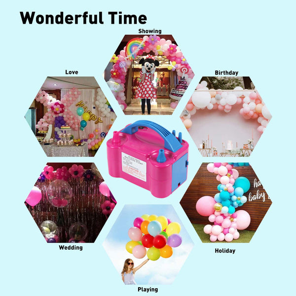 This quality electric balloon pump will inflate hundreds of decorative latex balloons in super-fast time, and commonly used in some activities/ festival/ party/celebration/ decoration.Inflate different sized balloons thanks to the practical dual-nozzle design. Simply attach your balloon and choose your inflation mode.This electric balloon pump fit to latex balloon and decorative balloon. Double pump, balloon air pump.Save yourself time, hassle, and precious oxygen with this powerful electric balloon pump.Portable Dual Nozzle Rose Red Electric Balloon Blower Pump Inflator for Decoration