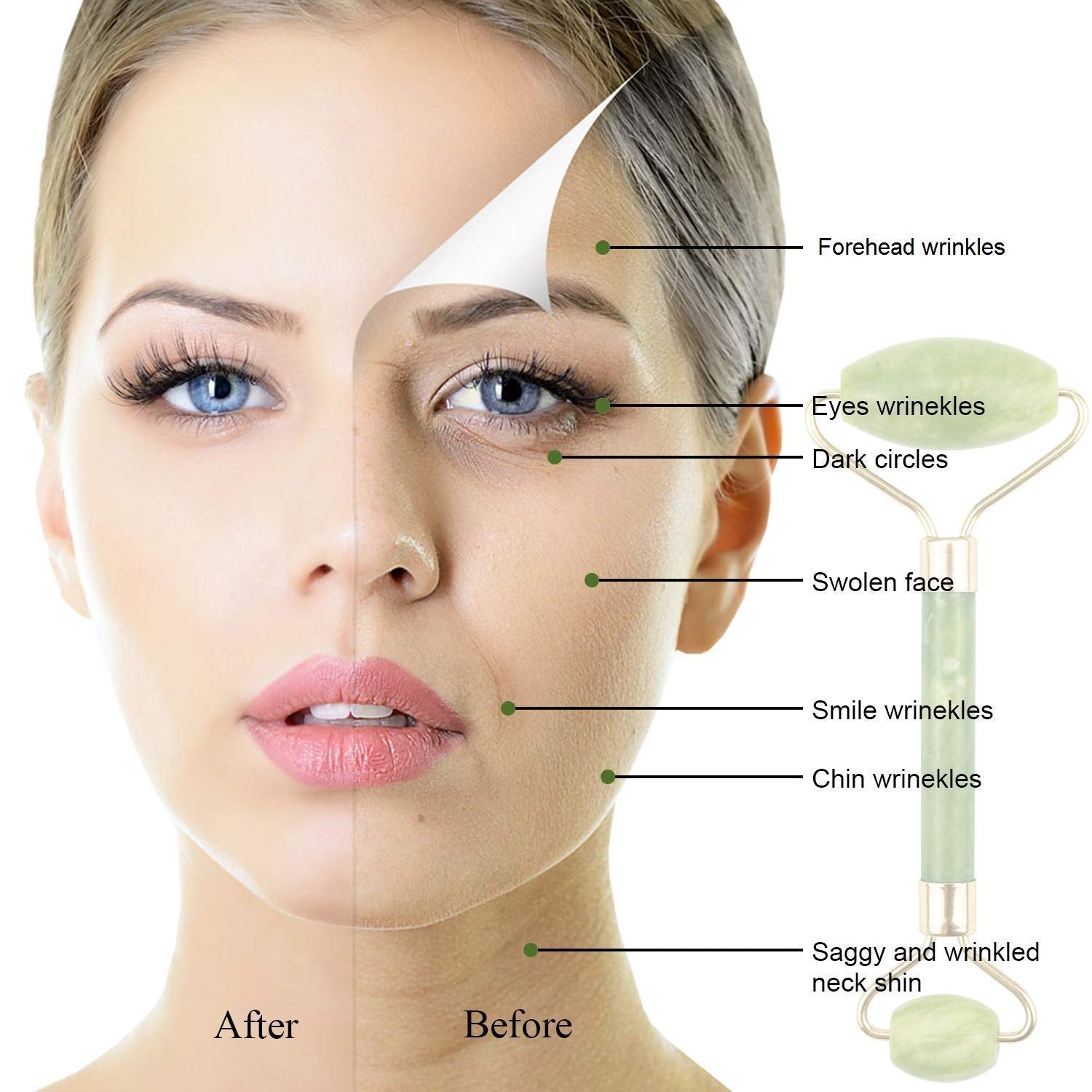 Premium Dual Head Jade Stone Face Roller & Gua Sha Massage Tool Set (1 Pc)
