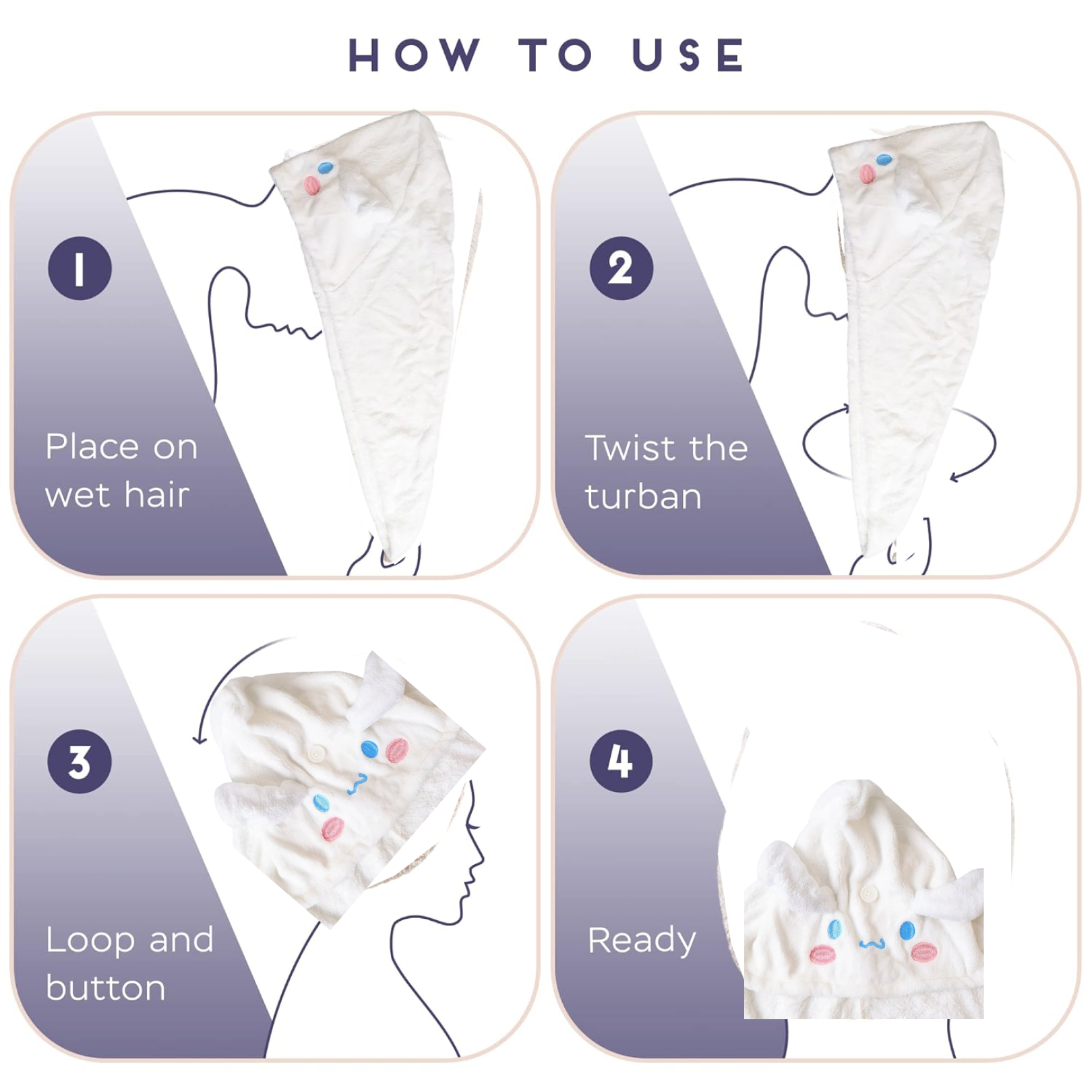 hair drying towel , hair wrap , quick dry towel , microfiber hair towel , hair drying cap , head wrap towel , hair drying , bath accessory , cute design hair towel , button closure hair wrap
