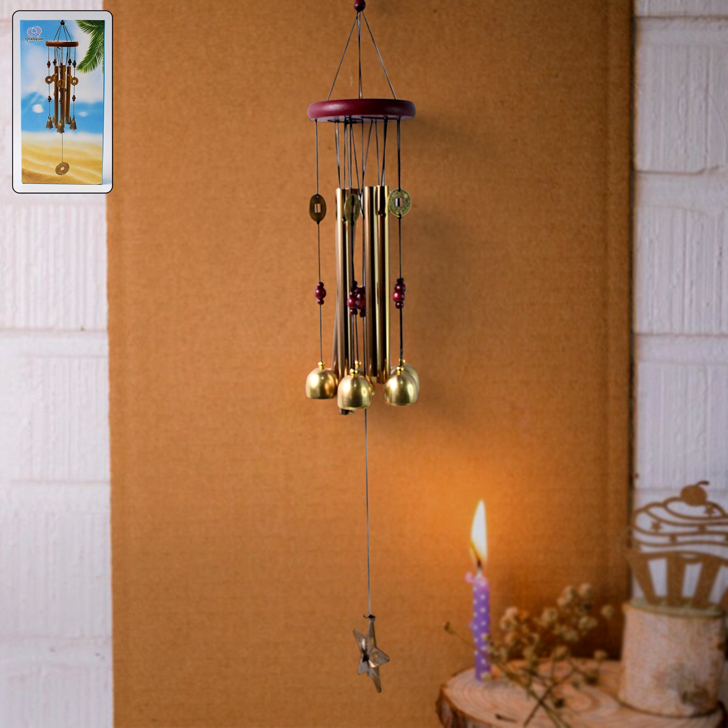 wind chime, pipe chime, metal bell chime,sound chime,balcony decoration,living room hanging, home entrance decor, spiritual decor, gift item,metal wind chime, golden hanging chime, pipe and bell chime