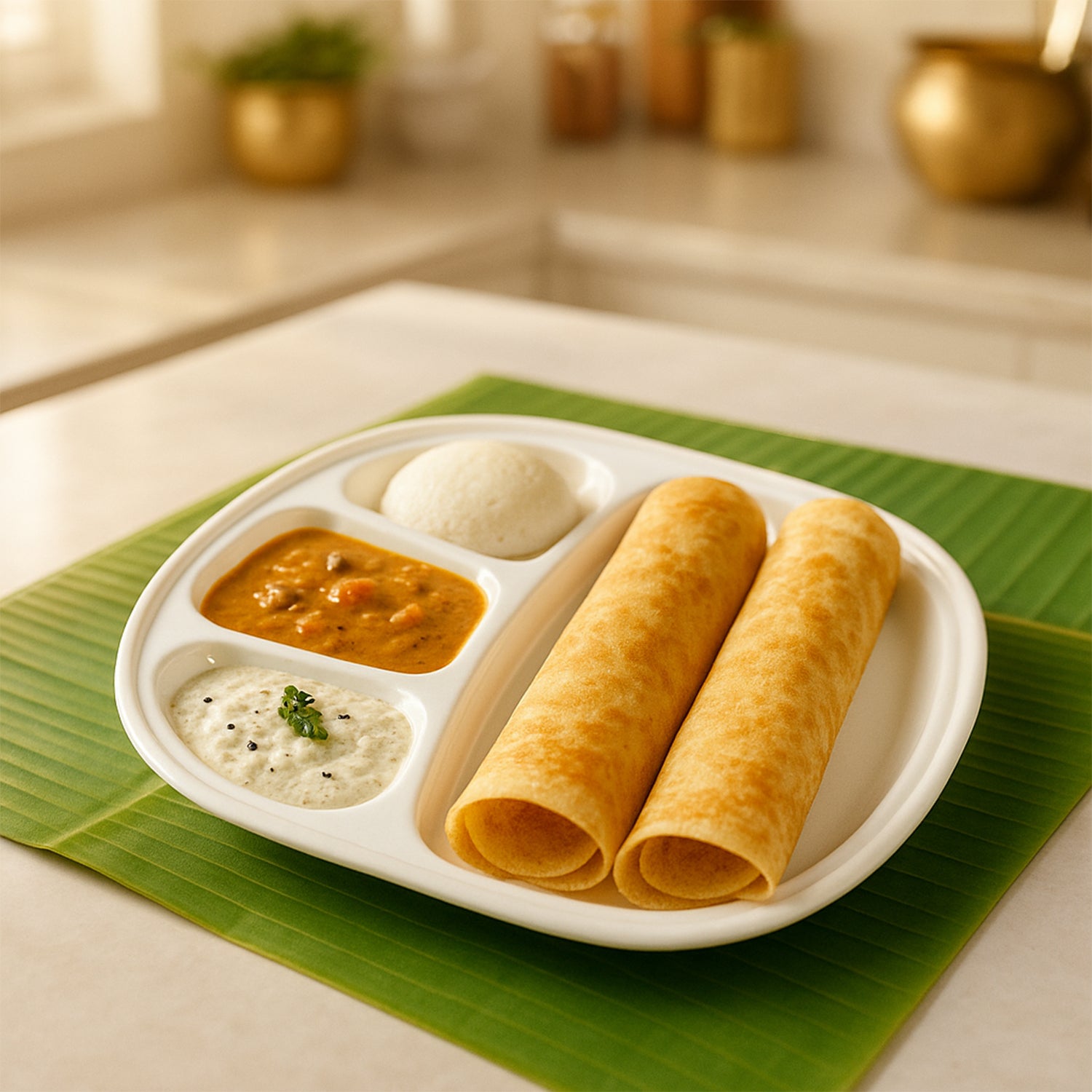 4 smart compartments: 1 large main section + 3 smaller sections to keep curries, sides, and condiments separate.