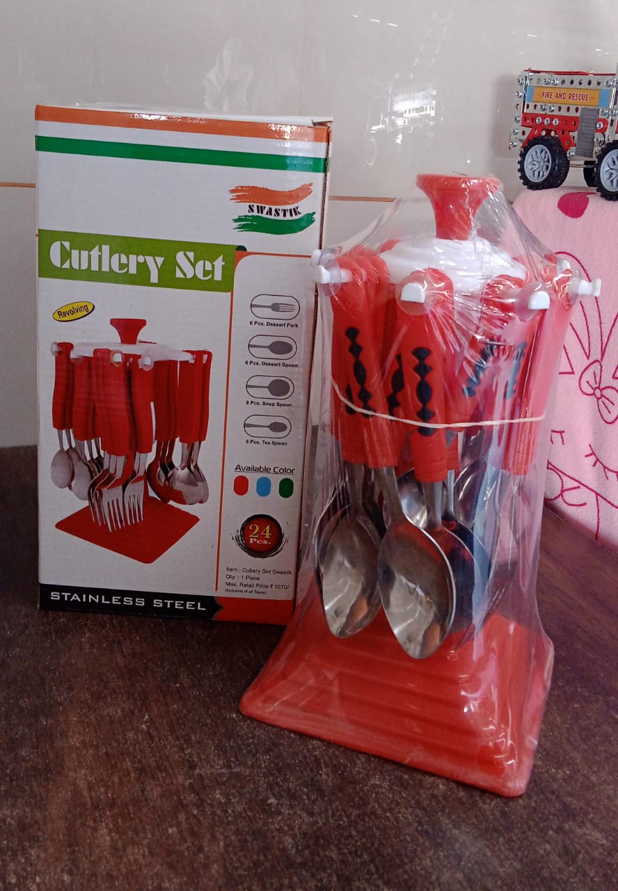 Classic Cutlery Set for Dining Table Stainless Steel 24-Piece Set With Stand (1 Set