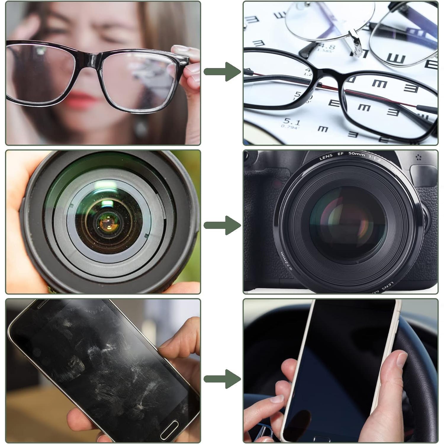 - WIDE APPLICATION - The glasses cleaning cloth is not only fit for cleaning your glasses, but also for your mobile phone screen, LCD TV screen, tablet computer, car rearview mirror, camera lens, goggles, cosmetic mirror.