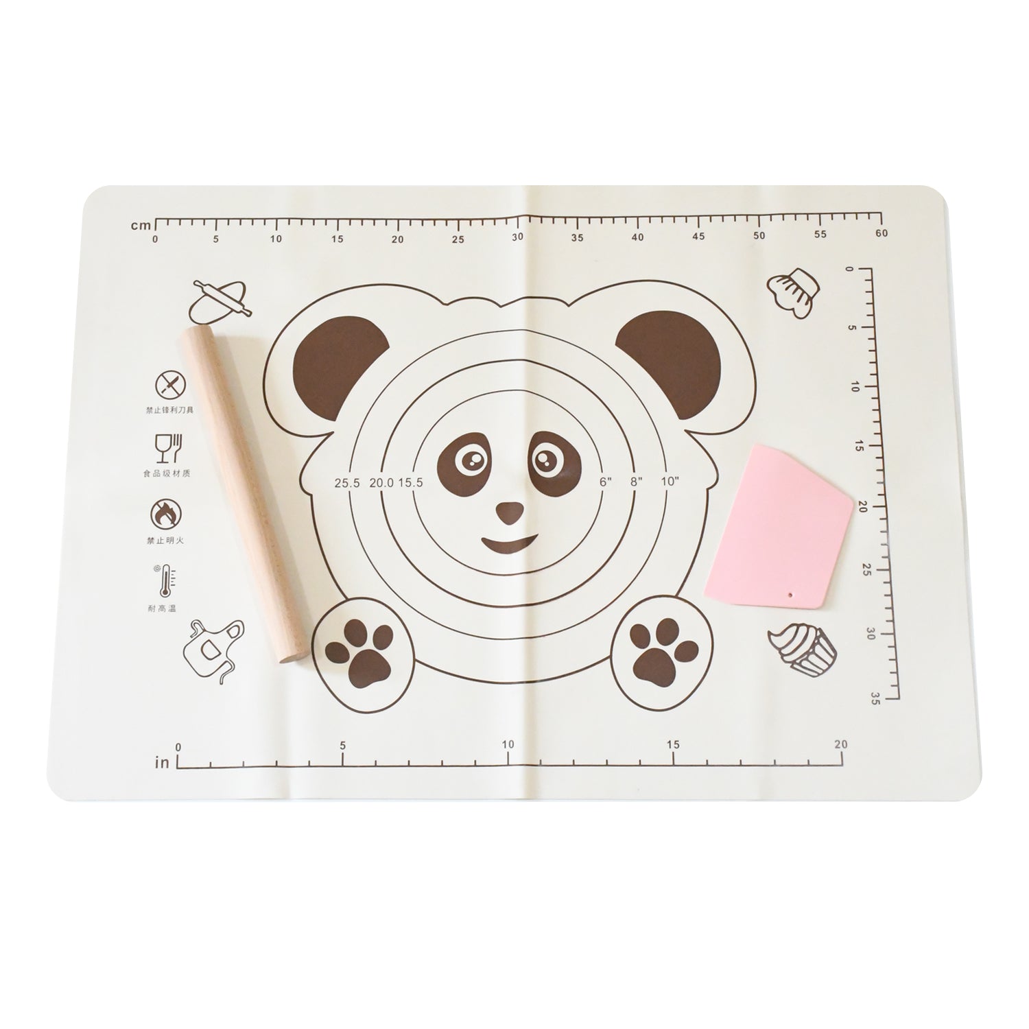 - Package Included 1 Pc Silicone Baking Mat, 1Pc Wooden Belan & 1 Pc Cake Scraper.