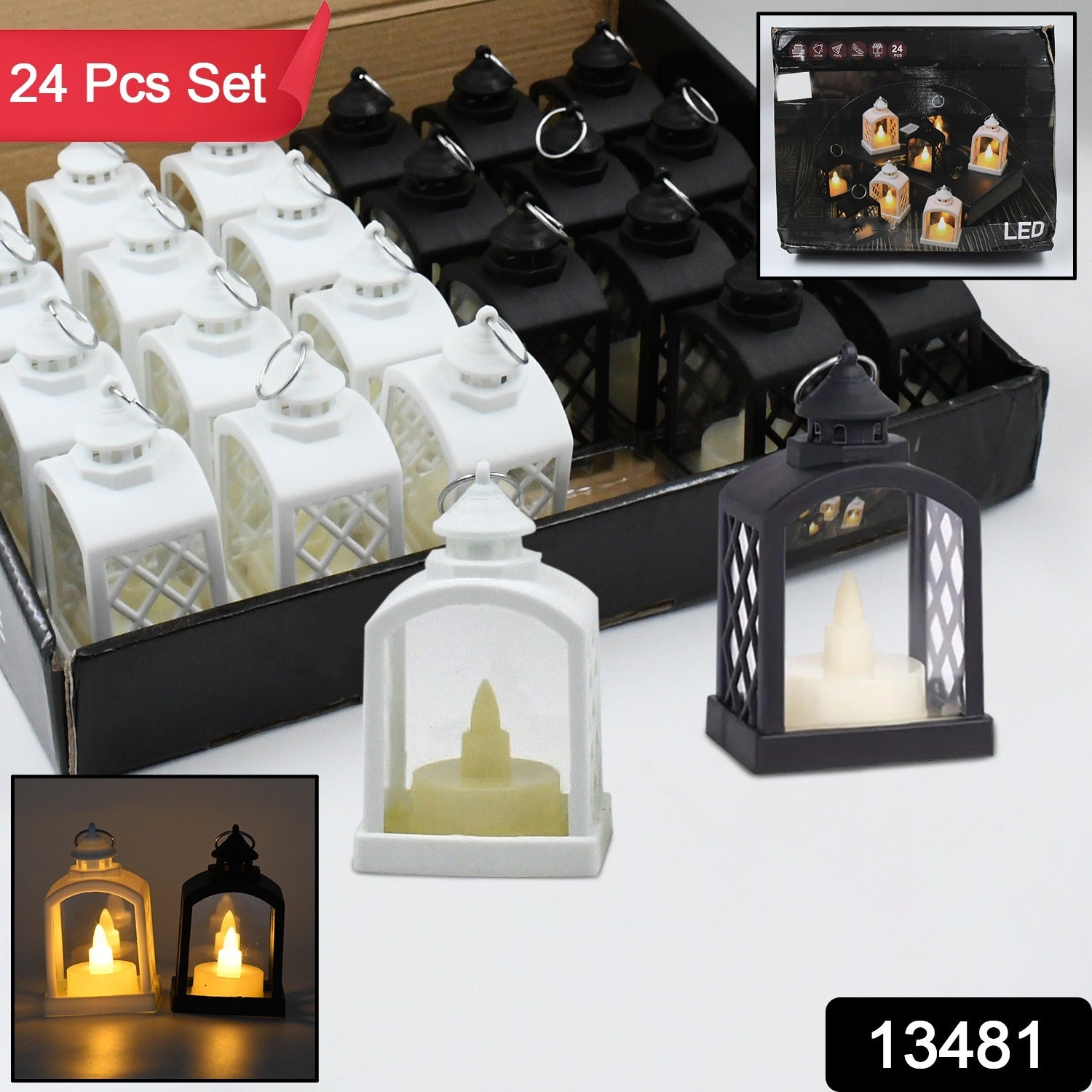 Smokeless Led Light Lantern Lamp and Wall Hanging Led Candlelight Holder for Home, Drawing Room, Diwali Decorations, Diwali Item (24 Pcs Set)
