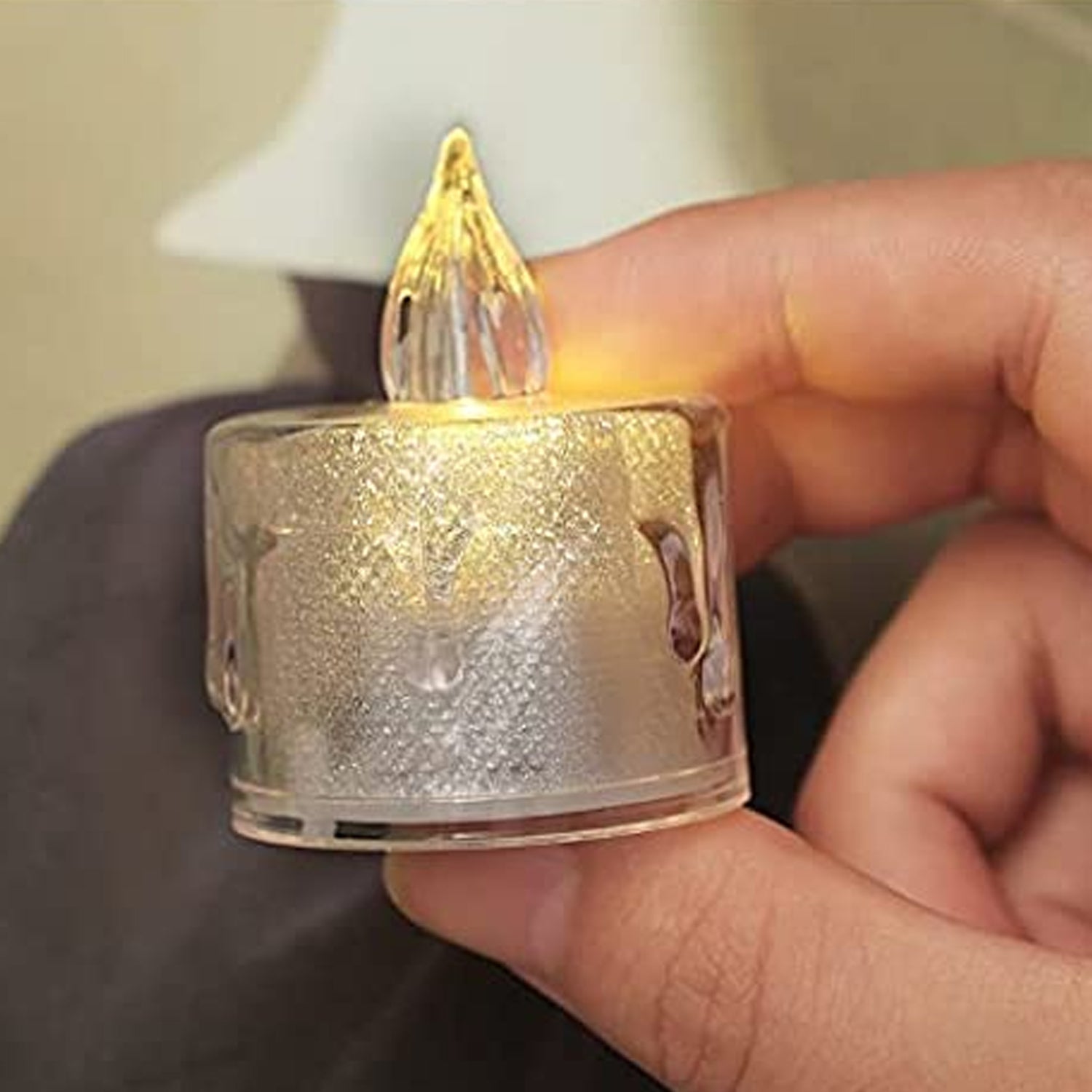 12 Pcs Flameless and Smokeless Decorative Acrylic Candles Transparent Led Tea Light Candle for Gifting, House, Diwali, Christmas, Festival, Events Decor Candles, Diwali