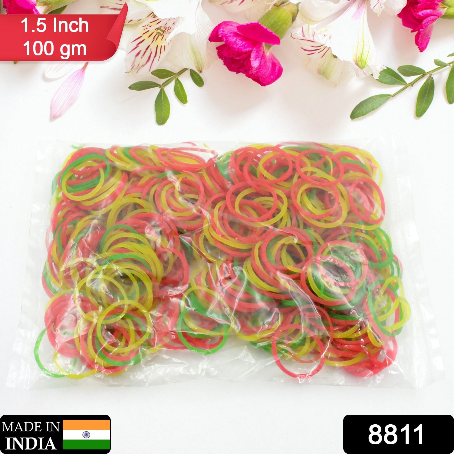 RUBBER BAND FOR OFFICE/HOME AND KITCHEN ACCESSORIES ITEM PRODUCTS, ELASTIC RUBBER BANDS, FLEXIBLE REUSABLE NYLON ELASTIC UNBREAKABLE, FOR STATIONERY, SCHOOL MULTICOLOR (1.5 Inch 100 GM)