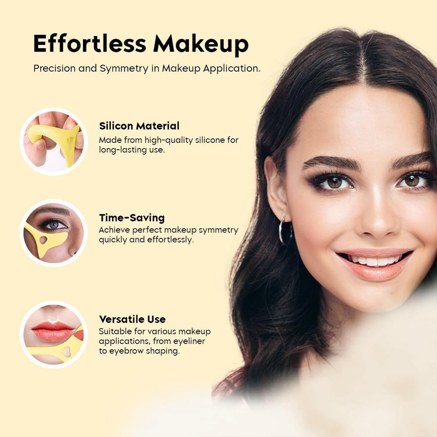 Get sharp, symmetrical wings in seconds. This flexible eyeliner aid sits comfortably against your eye to guide liquid/gel/pencil liners for flawless cat-eyes, straight flicks, or soft curves. The silicone body gently shields your skin from mascara smudges and eyeshadow fallout, while the heart cut-out helps you position the stencil precisely. Lightweight, reusable and easy to clean—ideal for beginners and pros who want consistent results with minimal cleanup.