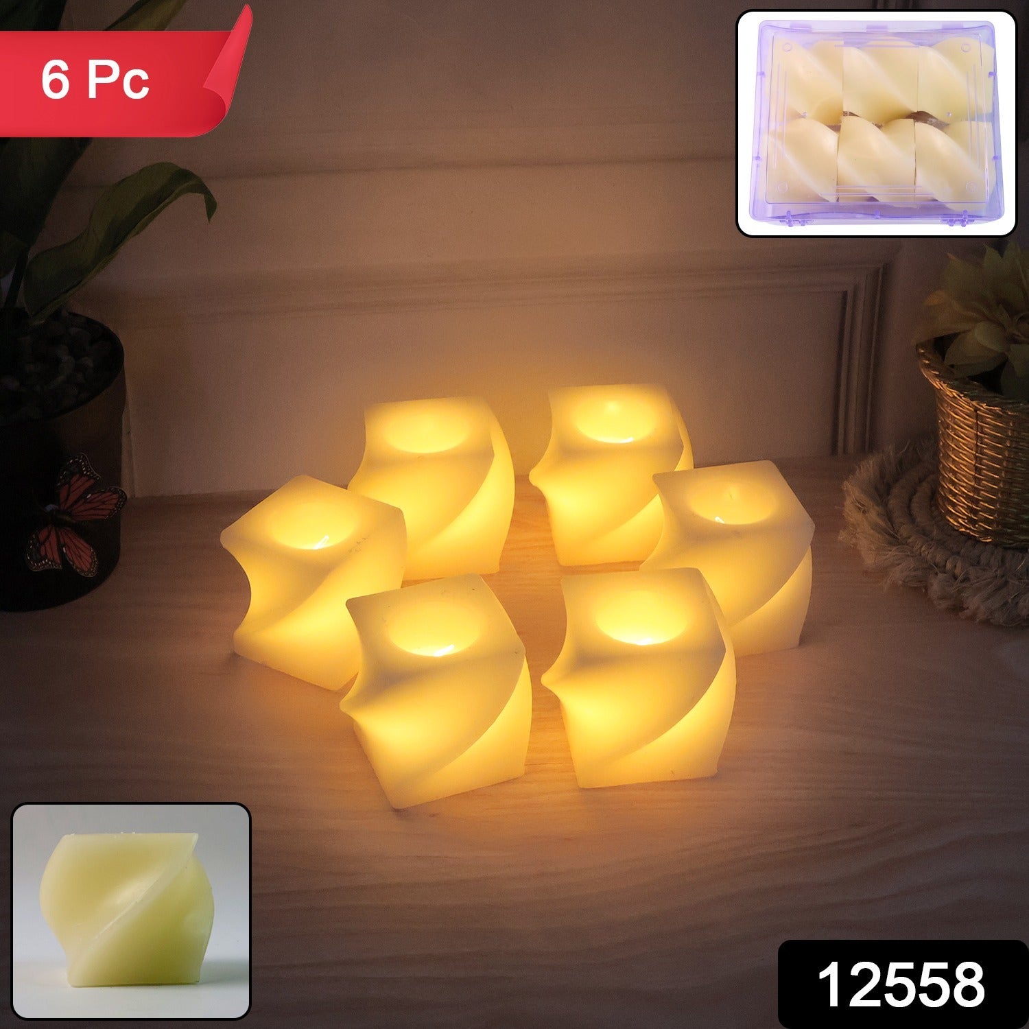 LED candles, Flameless candles, Decorative LED lights, Battery-operated candles, Ambient lighting, Tea light alternative, Home decor lights,Home decoration,Twisted design LED candle, Spiral flameless candle, Unique shape LED light, Decorative glow candle, Warm light LED candle