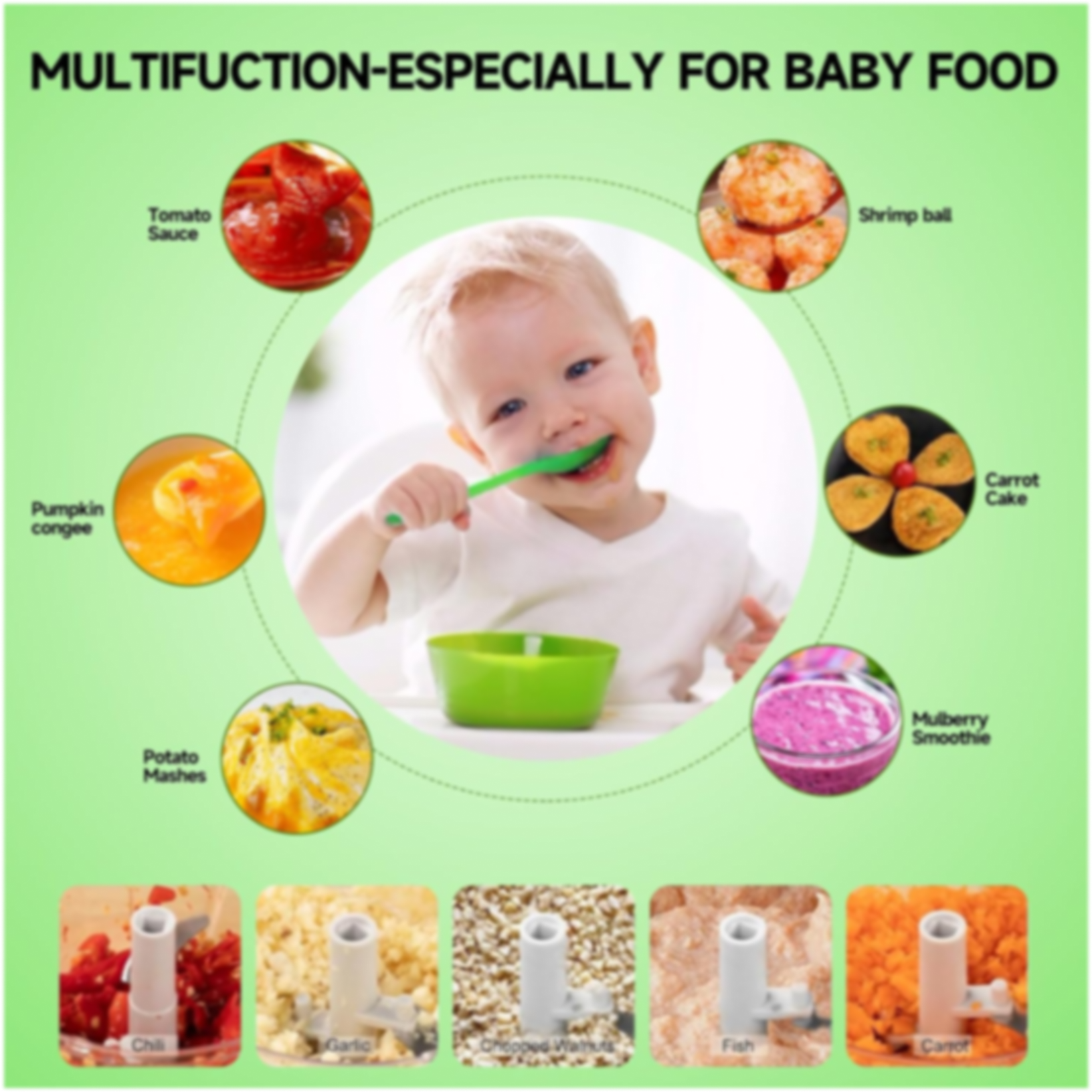 - Save your cooking time: only few pulls, you can chop the vegetables into small pieces!