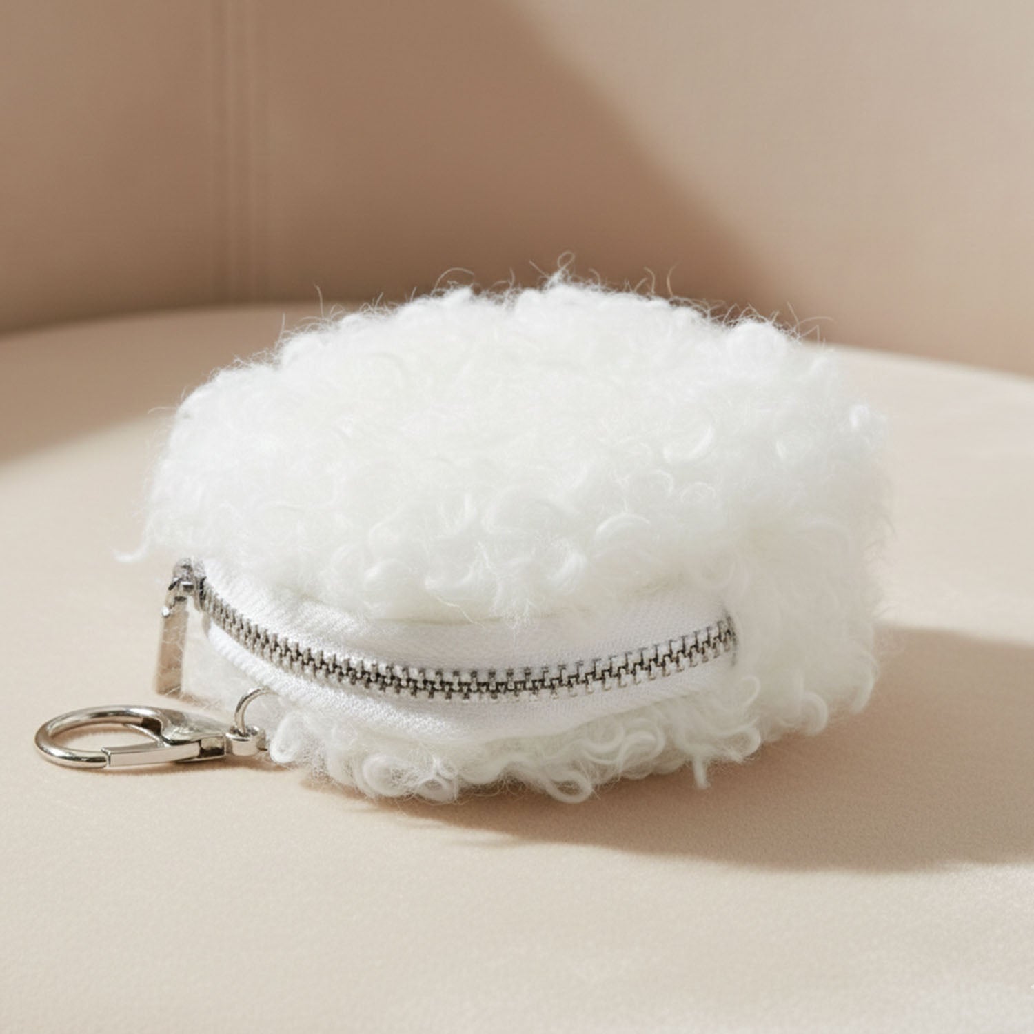 soft fluffy mini coin purse, zipper coin pouch, keychain hook purse, compact round faux fur pouch, coin storage bag, cash holder pouch, earbuds storage pouch, small essentials pouch, portable mini purse, cute faux fur coin purse, travel-friendly coin pouch, lightweight keychain purse, multifunctional mini pouch, handbag accessory pouch, pocket-sized fur pouch, stylish coin holder, decorative mini pouch